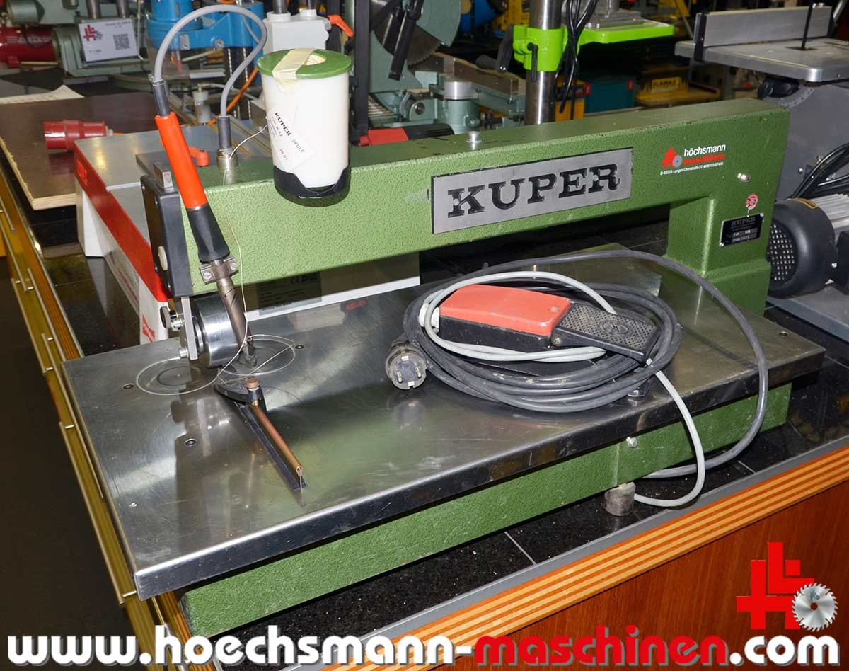 Kuper veneer splicing machine FWM 630 Mini, built in 1987, with glue thread, passage width 630 mm, with foot switch