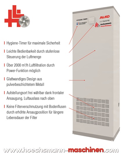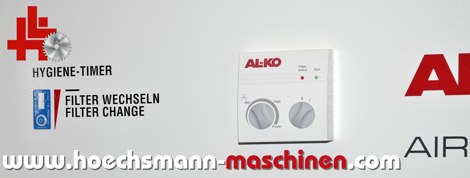 AL-KO air purifier, type AIRSAFE 1600, demonstration model, continuously adjustable for rooms from 50 m² to 180 m², filters 99.95% of all viruses (including Covid 19 corona viruses), bacteria, pollen, spores, and aerosols, space-saving slim housing, mobile thanks to casters, plug-in device design without installation effort, low noise levels thanks to professional technology, making it ideal for quiet environments such as schools and daycare centers, easy filter replacement with replacement indicator based on degree of contamination, complies with current recommendations from the ministries of education, workplace regulations, and DEHOGA, pre-tested HEPA filters and guaranteed maximum filtration performance in accordance with EN 1822,