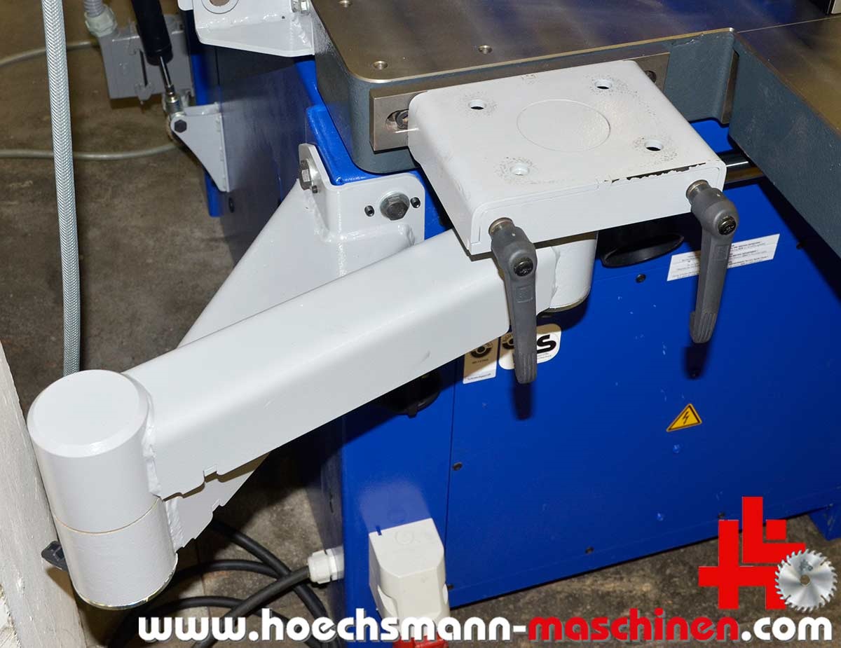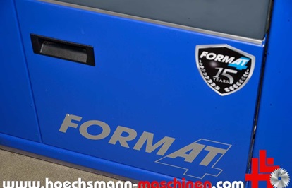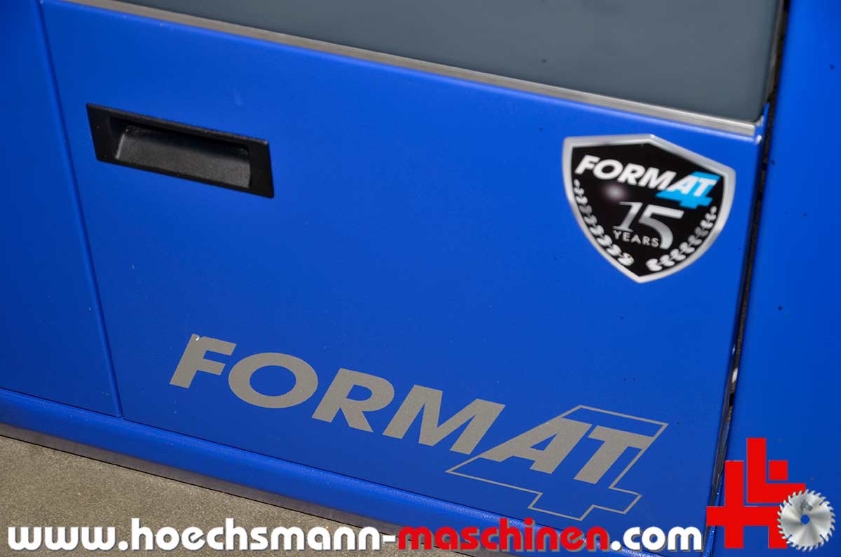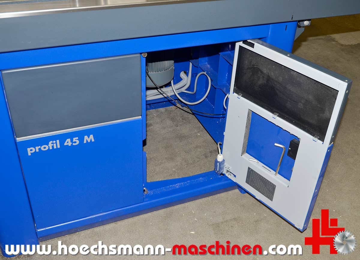 FORMAT4 swivel milling machine Profile 45 M x-motion, built in 2015, CE Sign, incl. integral stop x motion milling spindle control, milling stop for max. tool diameter 250 mm, electric MULTI adjustment system, milling table opening 320 mm, milling spindle swivel 90° - 45°, electric milling spindle height adjustment, milling spindle diameter 30 mm, 140 mm working height above table, motor power 5.5 kW, speed 3.500 / 4.500 / 6.000 / 8.000 / 10.000 rpm,