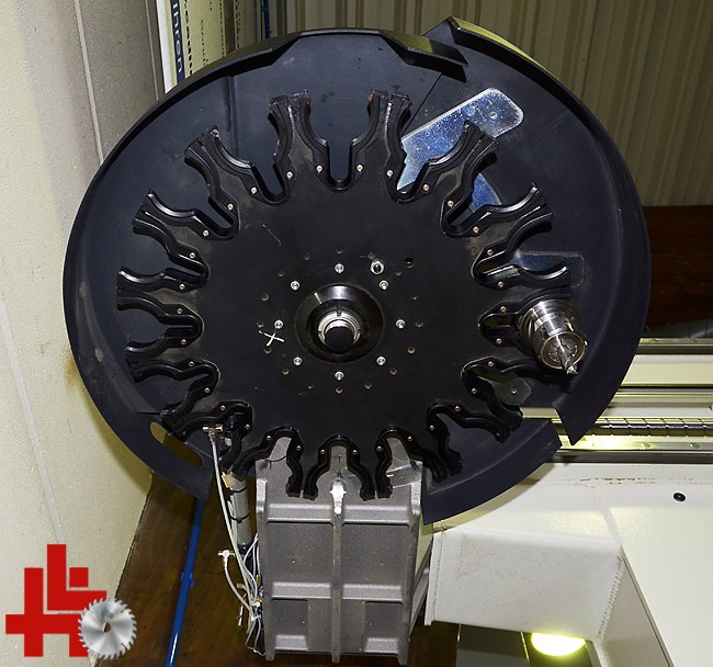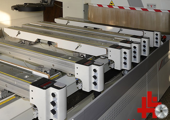 SCM CNC workcenter, type Record 110 TV-Prisma, built in 2007, with cross table, new HF milling spindle (8.5 kW) HSK with Rapid 16-fold tool changer, speed 600 - 24,000 rpm, drill head with 18 spindles, PC control with software, axis range X, Y, Z = 3,500 x 1,815 x 440 mm, working range 3,110 x 1,280 x 200 mm, 6 crossbars with tubeless vacuum suction cup clamping system with cross laser positioning, tread mat system, reinforced 250 m3 vacuum pump, HSK holders and tools, central extraction connection, original price approx. 130.000,- euros,