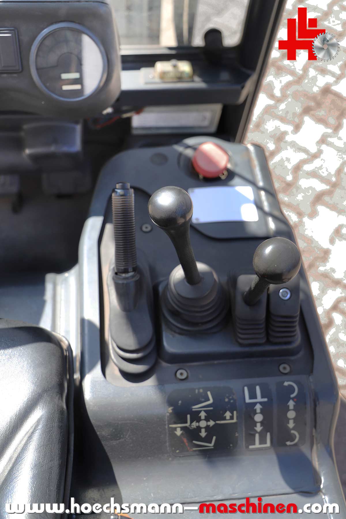 LINDE forklift truck, type E 16, electric drive, built in 1996, clearance height approx. 2.20 m, 1,600 kg nominal load capacity, 2,270 kg empty weight, 48 V batteries approx. 1,100 kg, patented double pedal control (1 forward pedal + 1 reverse pedal), approx. 4.80 m lifting height, triplex mast with 1, 60 m free lift, fork length 1,300 mm, sideshift and mast inclination controllable from the cabin, KAUP sideshift and manual fork adjustment, very good condition with current UVV test
