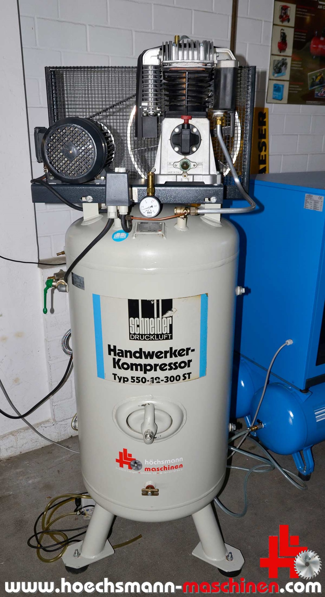Schneider DKS 550-12-300 ST compressor, with refrigeration dryer Aircraft AD 108, built in 2018, CE mark, maximum flow rate approx. 550 ltr./min, with 300 ltr. boiler, motor 400 V / 4 kW, revolutions 1,300/min, operating pressure 16 bar, particularly smooth silent running, dimensions l x w x h 800 x 800 x 1,950 mm, very good condition,