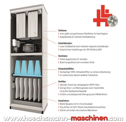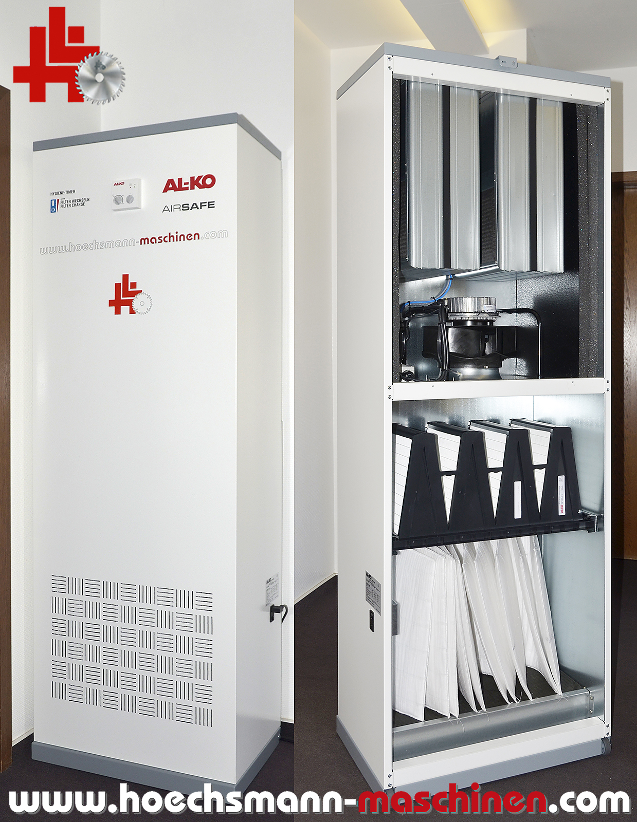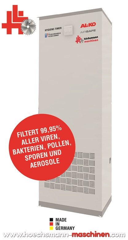 AL-KO air purifier, type AIRSAFE 1600, demonstration model, continuously adjustable for rooms from 50 m² to 180 m², filters 99.95% of all viruses (including Covid 19 corona viruses), bacteria, pollen, spores, and aerosols, space-saving slim housing, mobile thanks to casters, plug-in device design without installation effort, low noise levels thanks to professional technology, making it ideal for quiet environments such as schools and daycare centers, easy filter replacement with replacement indicator based on degree of contamination, complies with current recommendations from the ministries of education, workplace regulations, and DEHOGA, pre-tested HEPA filters and guaranteed maximum filtration performance in accordance with EN 1822,