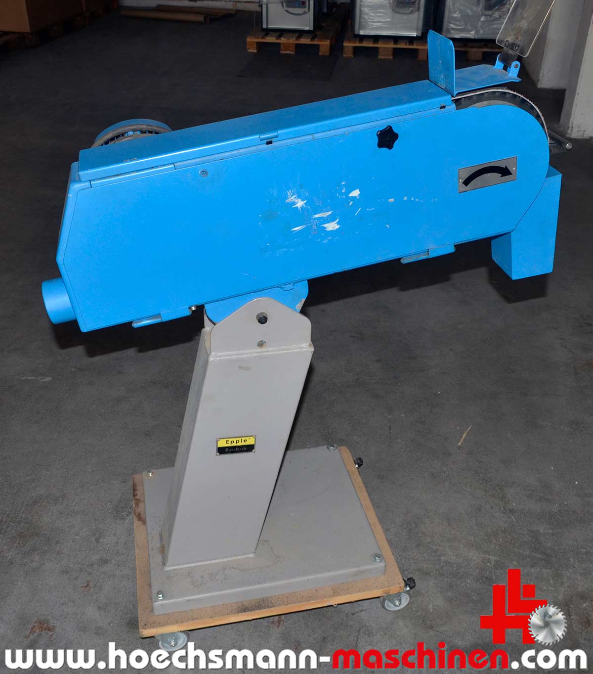 Epple belt sander BSM 75, built in 2003, CE mark, vibration-free operation, quick adjustment for vertical and horizontal position, continuous surface sanding by simply opening the cover, quick sanding belt clamping, high-torque motor, quick clamping for the sanding belt, time-saving deburring