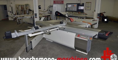 SCM format circular saw, type SI 5 Linvincibile digital, new expo machine, CE-Sign, cutting length 3.200 mm, width of cut (right) 1.500 mm cutting height 200 mm, complete with 5 axis digital control, LED display, digital control panel with screen above the table, scoring unit in two axis digital adjustable, electric-digital height and angular adjustment of saw blade, main engine 9 kW, miter fence, saw blade package, new expo machine, current list price over 42.000,- Euro